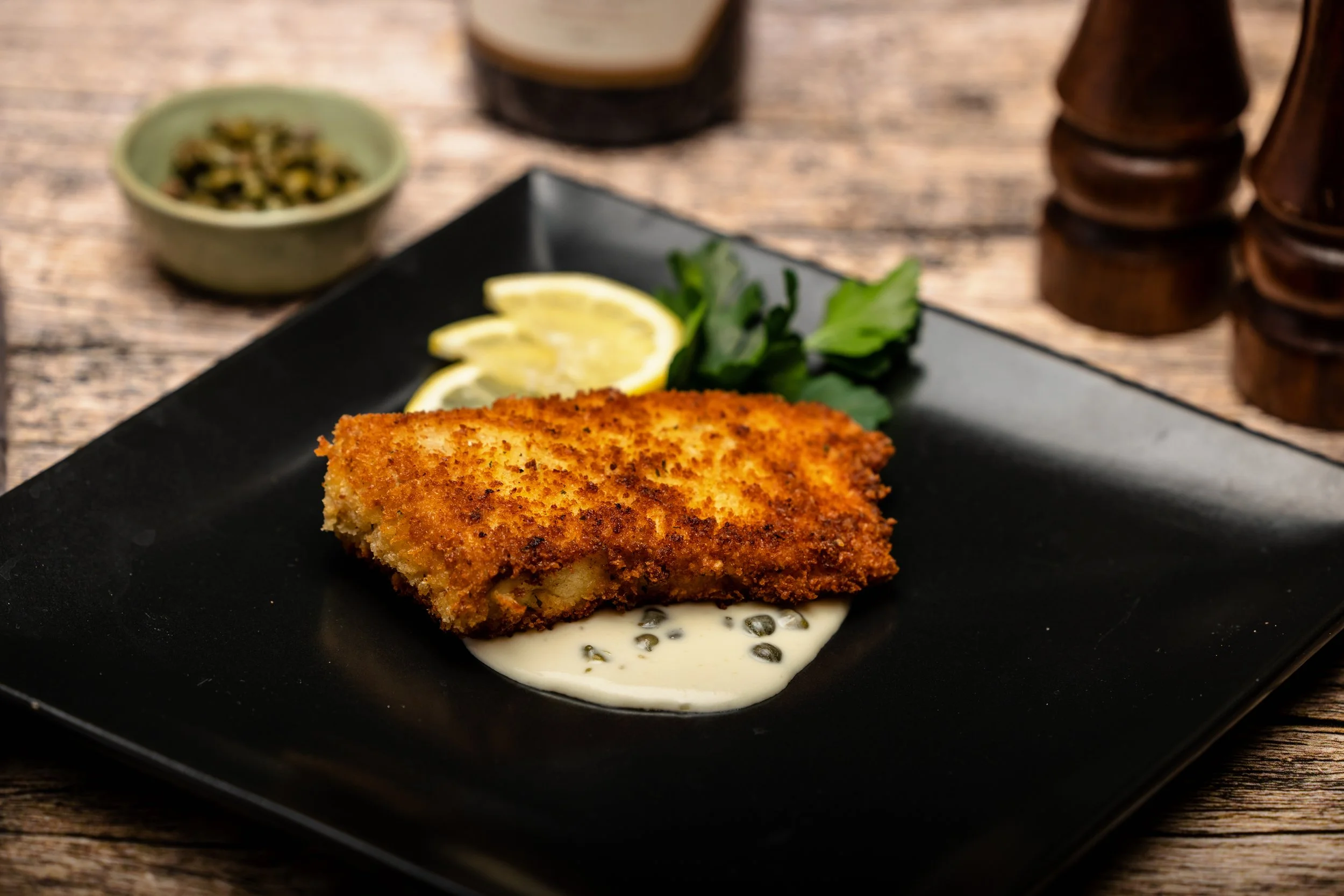 Panko Crusted Alaskan Halibut with Lemon Caper Sauce